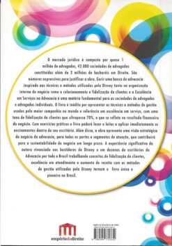 O mercado jurídico é composto por quase 1 milhão de advogados, 42.000 sociedades de advogados constituídas além de 3 milhões de bacharéis em Direito. São números expressivos para justificar a obra. Gerir uma banca de advocacia inspirado nas técnicas e métodos utilizados pela Disney tanto na organização interna do negócio como o relacionamento e fidelização de clientes e a Excelência em Serviços na Advocacia é uma matéria fundamental para as sociedades de advogados e advogados individuais. O livro é inédito por apresentar as técnicas e métodos de gestão usados pela maior companhia no mundo e referência em excelência em serviço, com uma taxa de fidelização de clientes que ultrapassa 70%, o que se reflete no resultado financeiro do negócio. Com exercícios práticos o livro poderá levar o leitor a aplicar imediatamente os ensinamentos dentro do seu escritório. Além disso, a obra apresenta uma visão estratégica do negócio da advocacia, para todos os portes e segmentos de atuação, que contribuirá para a sustentabilidade do negócio em longo prazo. A experiência significativa da autora vivenciada nos bastidores da Disney e em dezenas de escritórios de Advocacia por todo o Brasil trabalhando conceitos de fidelização de clientes, excelência em atendimento e aumento de receita com os métodos de gestão utilizados pela Disney tornam o livro único e pioneiro no Brasil.